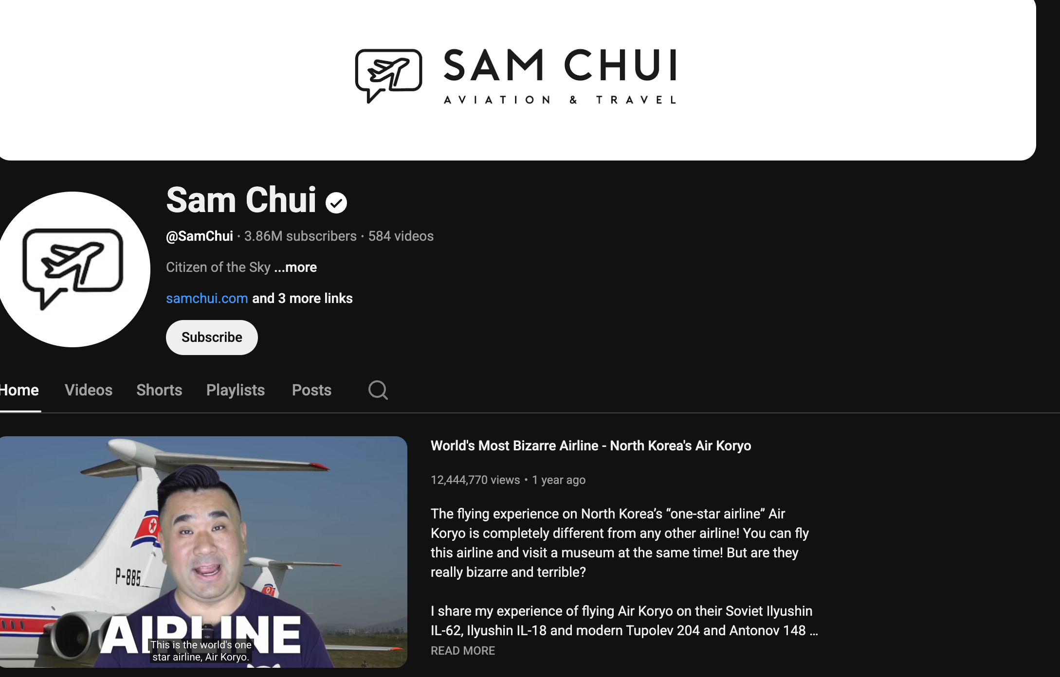 Sam Chui is arguably the most successful aviation personal brand in the world. With over 3.8 million YouTube subscribers, more than 1 billion views, and a community of nearly 7 million followers across platforms, he's built a global media business out of what started as a planespotting hobby in the late 1990s.